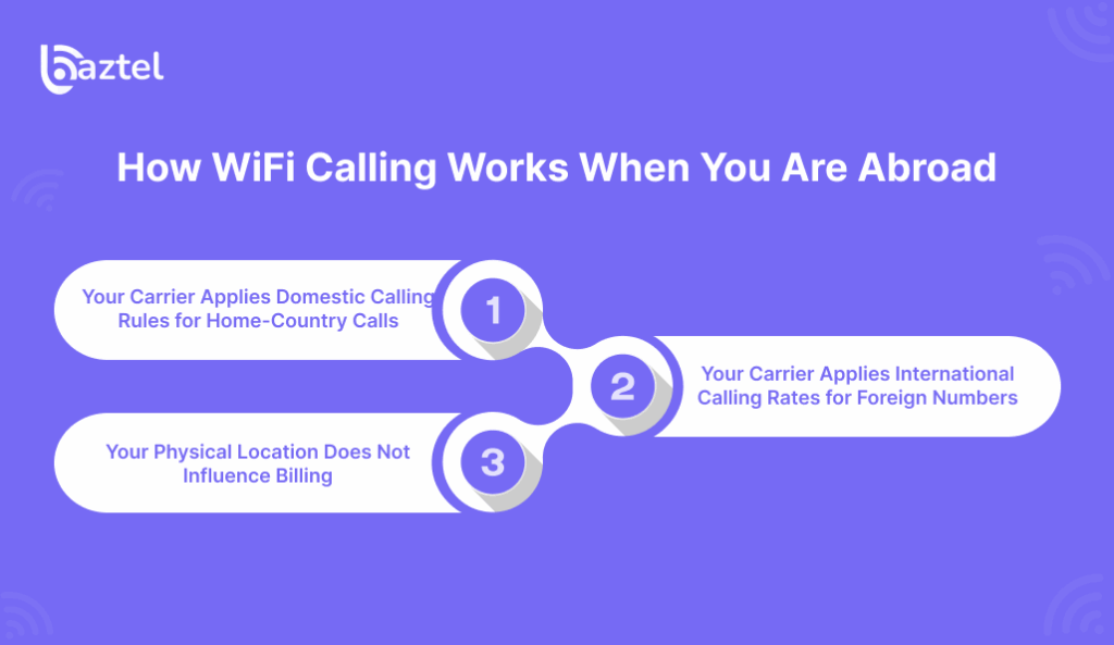 Your carrier does not consider your geographical location when calculating charges for WiFi calling. Whether you are in a hotel, airport, or a different continent, the billing rules depend entirely on where the call is being routed, which is always through your home country’s system.